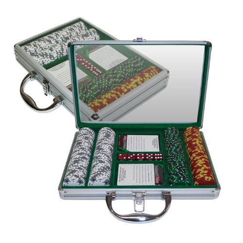 With a fine assortment of tri-tone colors, this exclusive chip line looks great too! Few chips on the market today can boast 3 colors and we are proud to offer these colorful and one-of-a-kind chips. With card suits decorating the outer rim of the chip in either black or white, and alternating Ace/King cards, these chips are available in your choice of 5 different color combinations. With your set of chips you will receive 5 dice and two decks of cards. This handy chip case has the durability of an aluminum chip case and includes a clear, scratch-resistant plexiglass cover to easily view the contents of the case. The case is produced from the finest aircraft aluminum and reinforced throughout, and yet it is lightweight. The interior is green felt with space for 200 chips, 5 dice, and 2 decks of cards. This is a chip case that will last a lifetime.